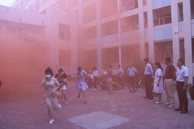 为认真贯彻落实习近平总书记关于应急管理的重要思想,进一步强化在校大学生的安全自救意识,当天19时整,围绕2018年“安全生产月”和“安全生产江淮行”“生命至上,安全发展” 的活动主题,武装部、保卫处配合、协助、指导学生公寓管理中心在大学生公寓8号楼开展了一次火灾逃生应急疏散演练。随着校党委常务、副校长韩军下达“开始演练”的命令,宿舍楼模拟电线短路引发火情,全楼灯灭,楼道浓烟滚滚,楼内学生在工作人员的引导下,用湿毛巾捂住口鼻,弯腰迅速、有序、安全地从宿舍撤离。参演师生在7分钟的时间内按预定的疏散路线迅速撤离到安全地点。经清点人数后,得知有1名学生受伤,现场总指挥立即向救援队发出救援指令,救援队迅速展开搜索,并将受伤学生安全救出,在医护人员的帮助下,用担架抬往医疗救护点救治,19时08分演练结束。此次演练活动按预案顺利完成,各环节中师生互助有序、配合默契,学生动作敏捷、规范到位,没有推拉、冲撞、拥挤现象发生,取得了预期效果。