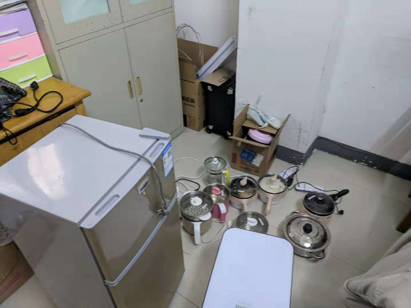 本次主要针对在宿舍内私接乱拉电线、使用大功率电器,酒精炉等违章用火用电行为,安全疏散通道是否畅通等情况,经全面细致的排查,共发现并收缴电饭锅8只,烘鞋器1个,电冰箱2台。除此之外,据提学生供信息,目前仍有多数未被发现的大功效电器被私藏。