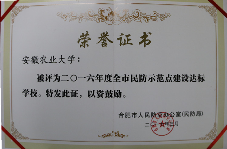 最后,会议对2016年合肥市人防工作先进单位和先进个人进行了表彰,我校荣获“全市民防示范点建设达标学校”称号,这是我校首次获此殊荣。
