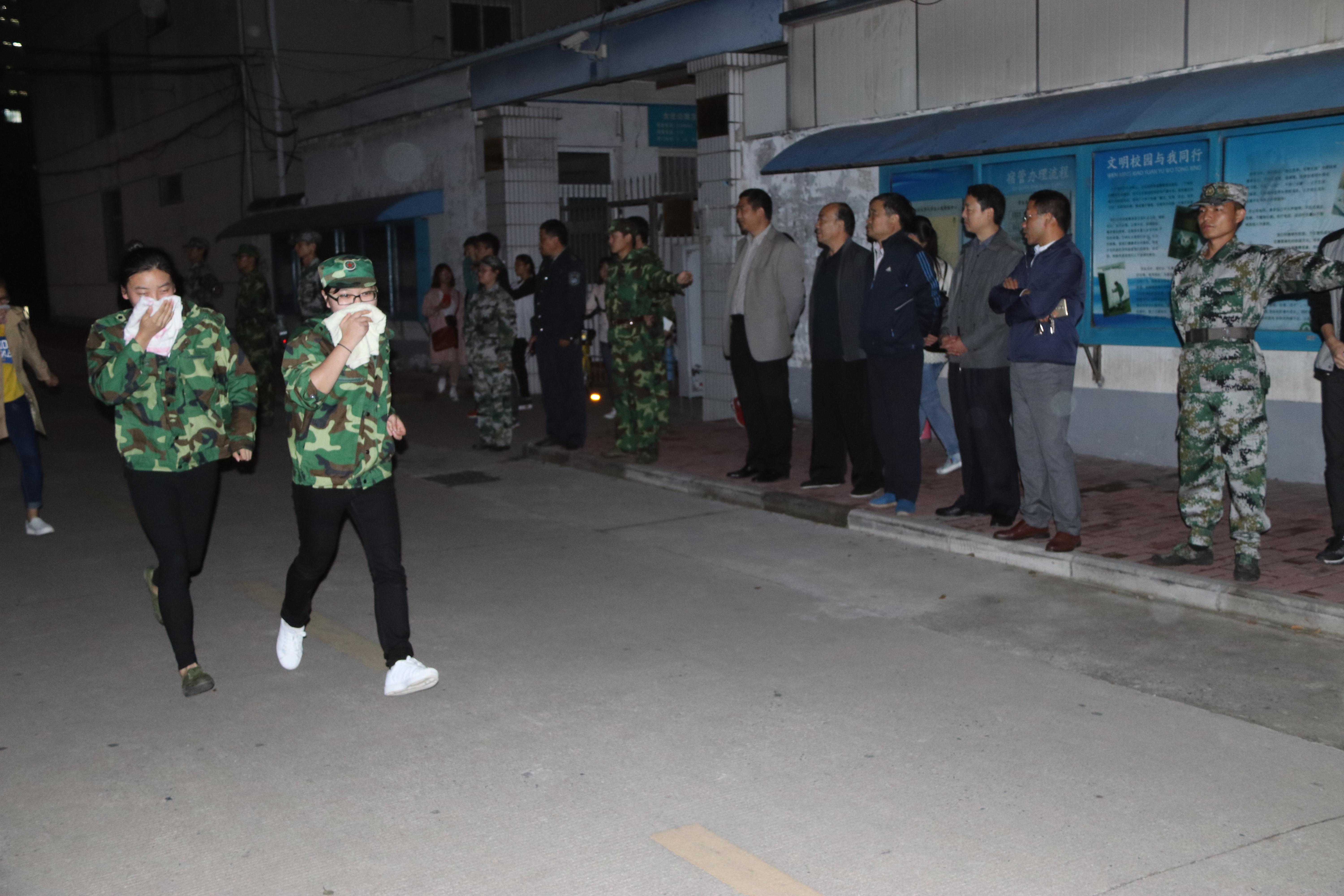 此次应急演练从制定方案到应急演练实施,军训团作了精心准备,在整个演练活动中,各参加单位教师自始至终跟班引导,宿舍管理人员密切关注演练现场并照明配合,军训教官严密保护演练场地维护活动秩序,防止发生意外。此次演练活动按预案顺利完成,各环节中师生互助有序、配合默契,学生动作敏捷、规范到位,没有推拉、冲撞、拥挤现象发生,取得了预期效果。