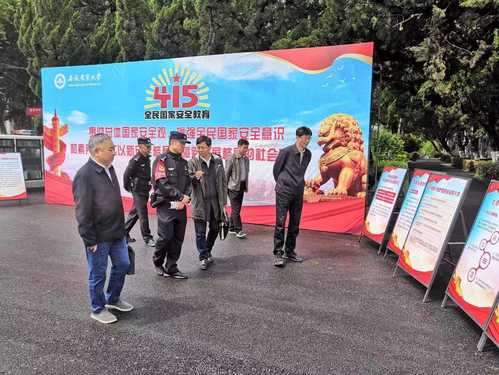 本网讯 4月14日上午,我校联合合肥市公安局蜀山分局在校大礼堂门前广场开展了“4.15”全民国家安全教育日主题宣传教育活动,校领导裴树东、韩军、陈文兵出席活动。