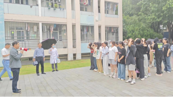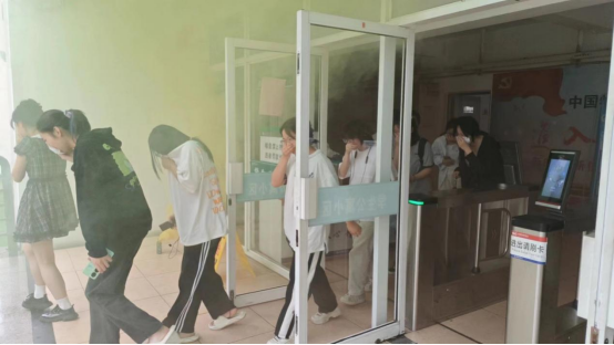 5月11日上午10:30,随着火灾警报声的响起,各区域安全疏散引导人员迅速就位,做好疏散引导。楼内学生按预定的疏散路线,捂住口鼻弯腰贴墙靠右行,井然有序的按照指定路线,以最快的速度安全撤离到指定集合地带。