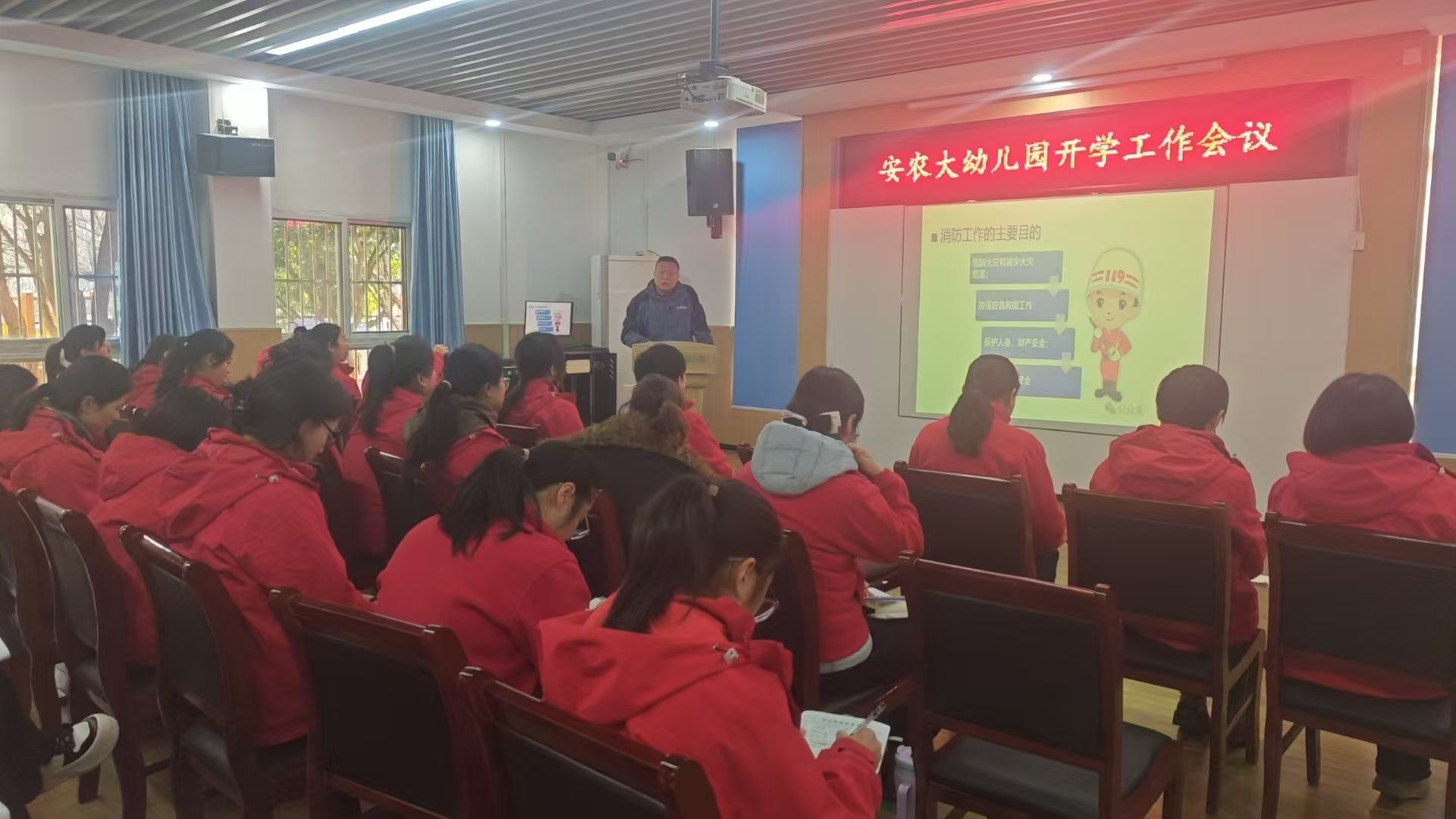 为进一步增强师幼消防安全意识,提高应急自救能力,2月19日我校幼儿园联合保卫处对园内教职工开展了消防安全知识培训及灭火实操。