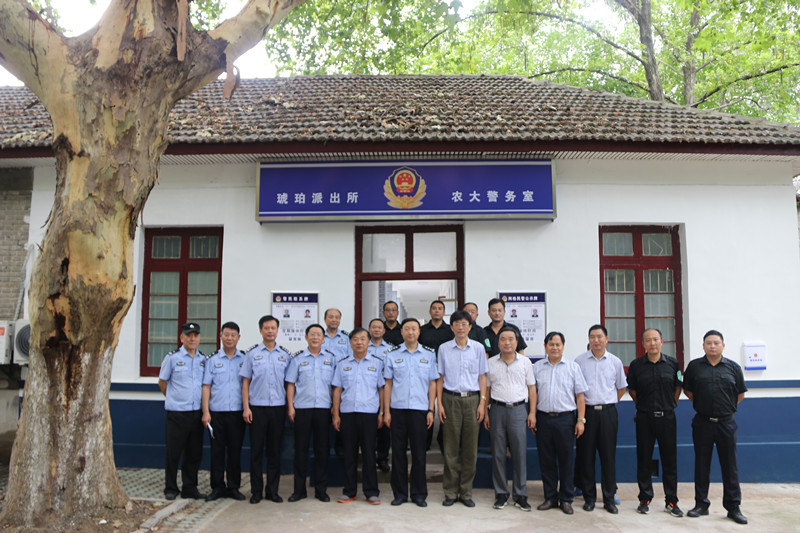 合肥市公安局琥珀派出所驻安徽农业大学警务室揭牌仪式在校保卫处举行。校党委常委、副校长韩军,合肥市公安局相关支队领导出席揭牌仪式并为驻校警务室正式揭牌。蜀山分局相关领导,校办公室主任刘凯、宣传部部长朱绍友、总务处处长丁金锁、现代教育信息中心主任简少明、保卫处处长涂德润等参加揭牌仪式。