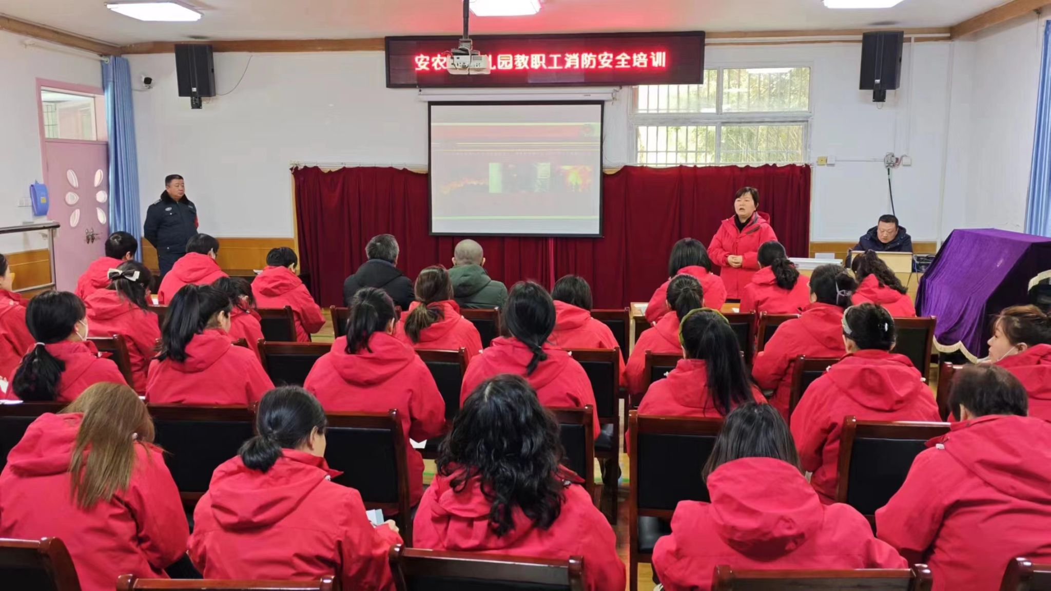 本网讯 为进一步加强校园消防安全,营造安全、稳定、和谐的校园环境。2月23日上午,保卫处赴幼儿园为全体幼教职工进行消防安全培训。培训从火灾的预防和扑救;火场逃生;灭火器的使用;消防设备的维护和检查等方面展开。通过生动的案例和图片,详细讲解了火灾的危害性,火灾的起因和火灾的预防措施,让教职工们深刻认识到消防安全的重要性。培训实操中,参训人员轮流操作了手提式干粉灭火器,体会掌握 “一提、二拔、三握、四压”的正确使用方式。