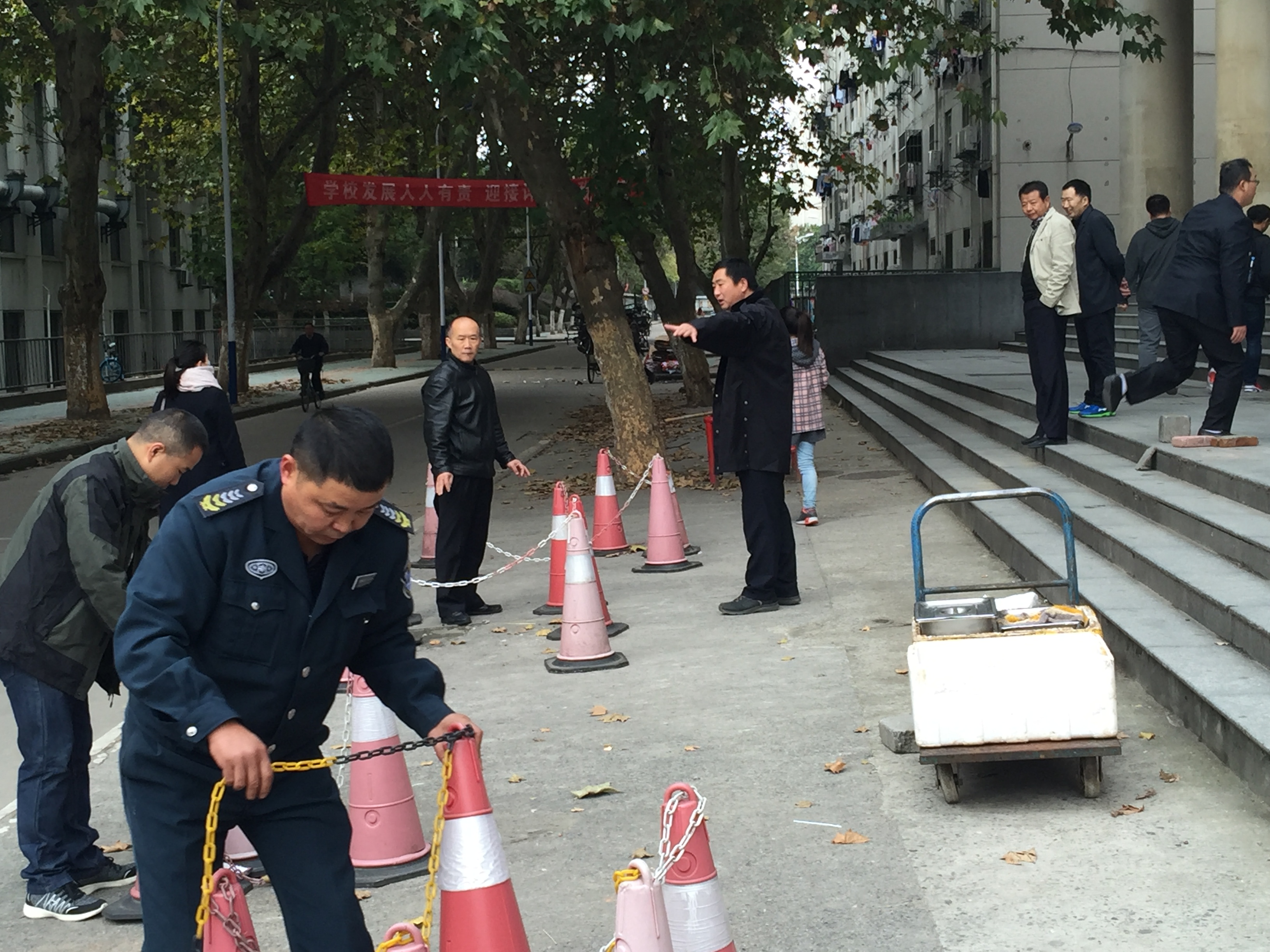 11月9日早晨8时,早会上保卫处处长涂德润对此次整治工作进行了专题部署和责任分工,全处各科室迅速组织人手,全员上阵,对东门口原禾禾餐厅和超市门口人行道上违规停放和废弃的70余辆非机动车进行集中归置,并分别转移到原禾禾餐厅西侧和一号宿舍楼前非机动车停车场,同时对长期“沉睡”的“僵尸车”收拢清理,还路于师生。此次非机动车专项清理与整治行动,初步缓解了校园内东门人车拥堵现象,取得了阶段性效果。