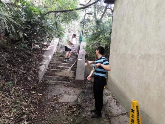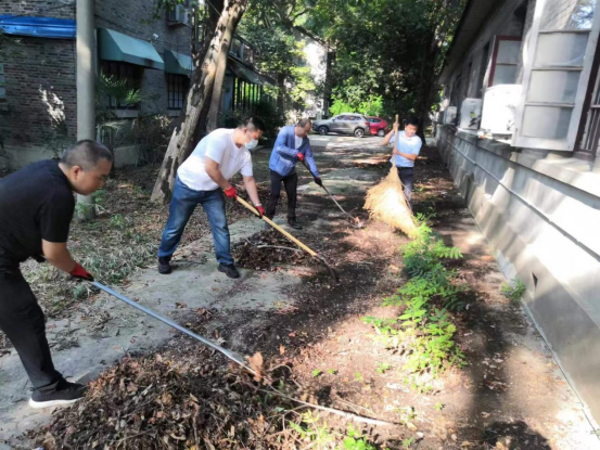 活动中,全体党员发挥不怕脏、不怕累的精神,对保卫处大院周边墙檐的枯枝落叶,树池中的白色垃圾及建筑垃圾等进行清理,对部分卫生死角进行彻底整治。