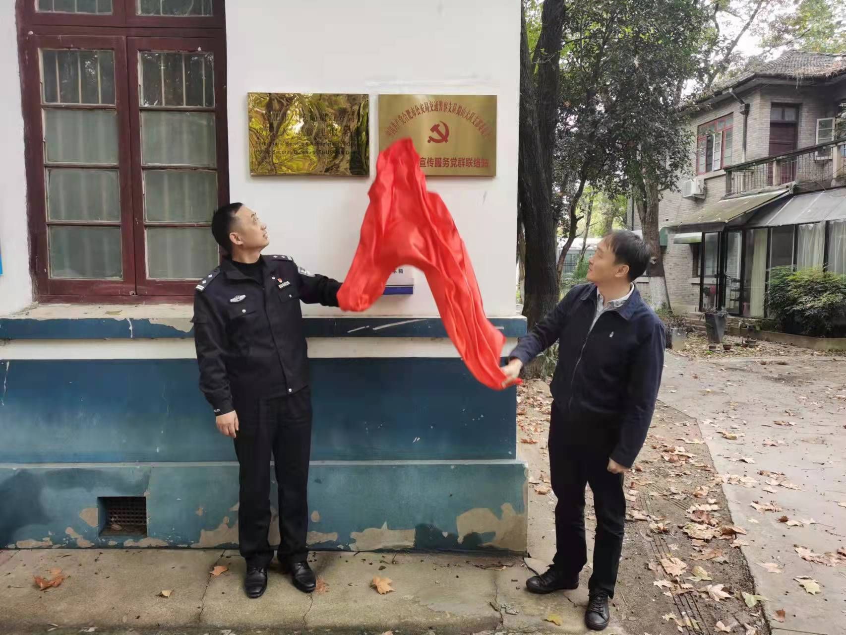 任建东、徐民召分别代表所在党支部签署《警校党建共建协议书》,并共同为交警蜀山大队-安农大交通安全宣传服务党群联络站揭牌。